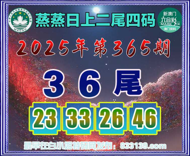 365期:『蒸蒸日上』 二尾四码【36尾主:23.33.26.46】开:26准上榜高手