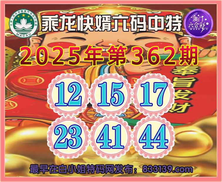 362期:『乘龙快婿』 六码中特【12.15.17.23.41.44】开:23