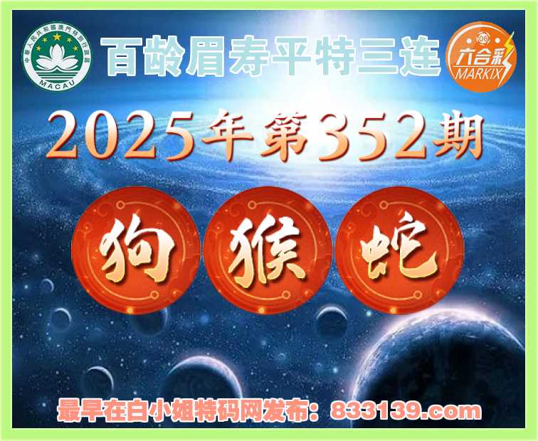 352期: 《百龄眉寿》 平特三连【狗猴蛇】开:狗44,猴10,蛇25