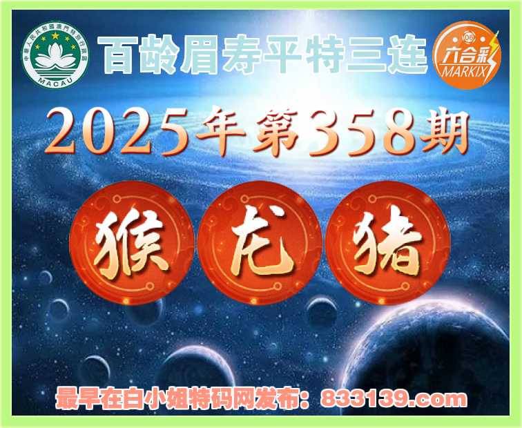 358期: 《百龄眉寿》 平特三连【猴龙猪】开:猴22,龙26,猪07