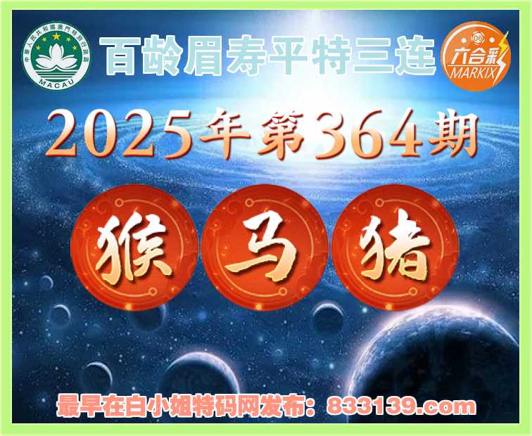 364期: 《百龄眉寿》 平特三连【猴马猪】开:猴22,马12,猪31